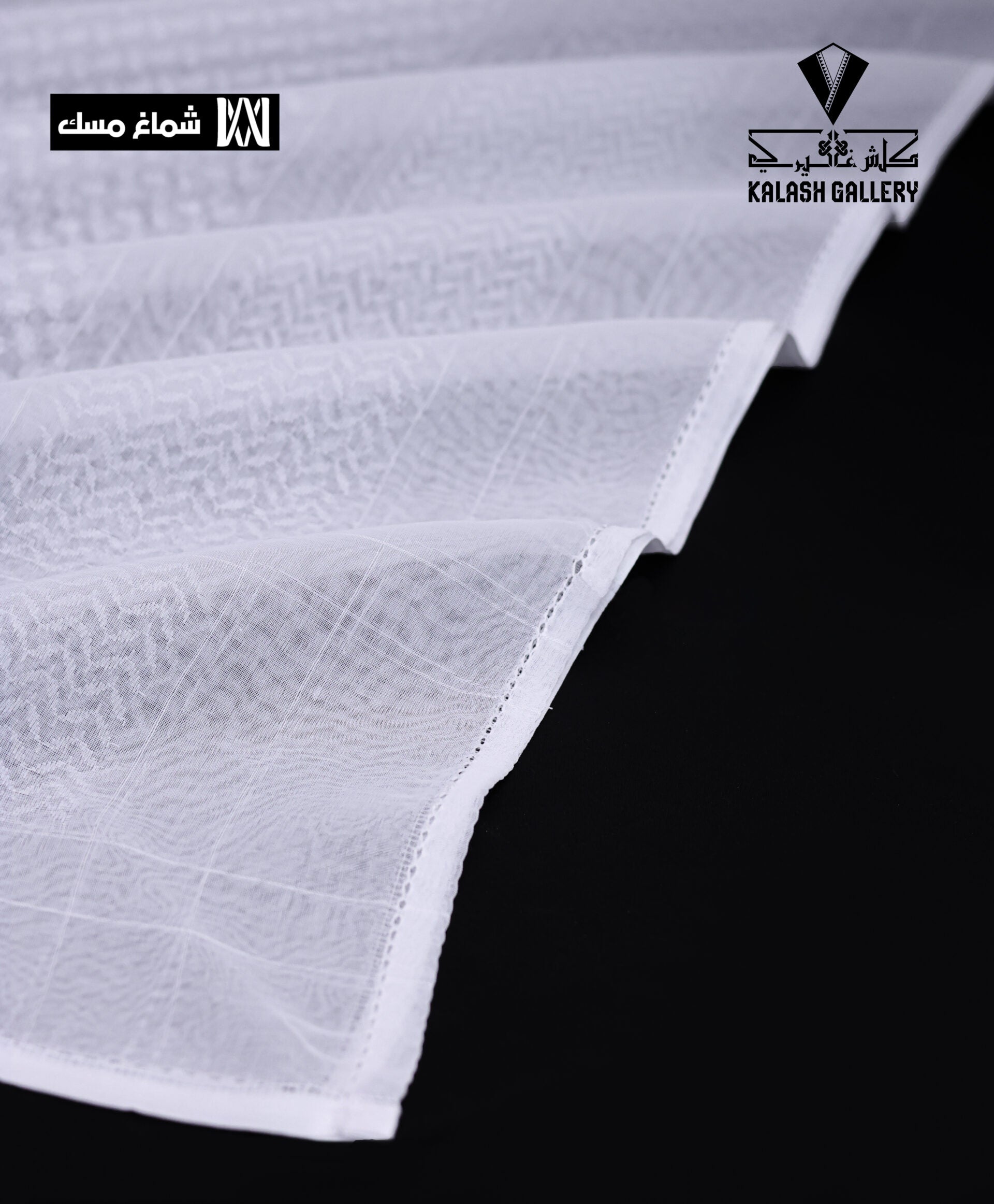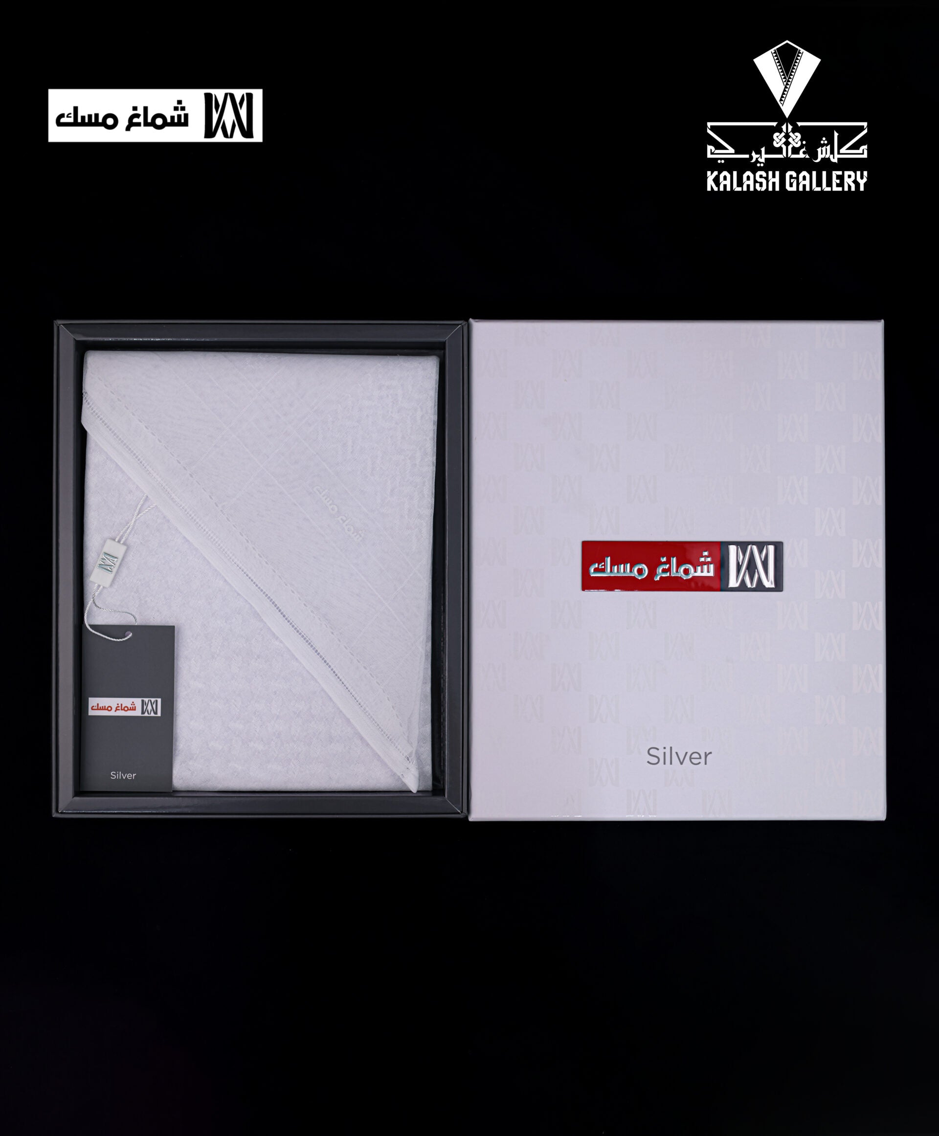 **Discover the White Musk Silver 6 Shemagh - your elegant companion from Kalash Gallery**